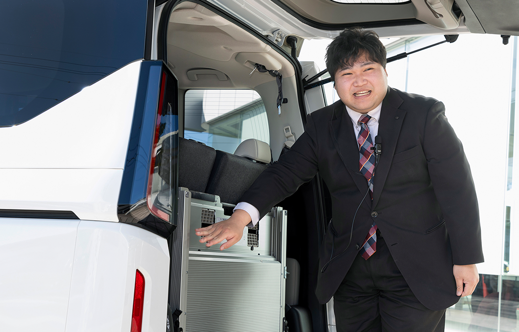 阿南さん:事前にお調べになった上で「実際に使ってみたい!」という目的意識を持ってご来店される方が大半ですので、初回から実際にご使用になっている車いすなどを持ち込んでいただき、とにかく車両でいろいろなシチュエーションを試していただいています。そのため多くのお客さまが2回目のご来店で購入するお車を最終決定されるケースが多いですね。